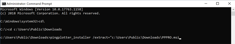 [installer directory]/pingplotter_installer.exe /quietAlternatively, you can open CMD with Administrator privileges, change the current directory to the location of the executable, and run the installer using the command above.
